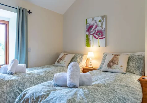Step outside to discover your private hot tub with stunning countryside views, an enclosed patio area with outdoor furniture, and a charcoal BBQ for al fresco dining. The property offers three beautifully appointed bedrooms: one double and two twins (one with 2'6″ single beds), alongside a family bathroom with shower over bath, a convenient ground-floor shower room, and an additional WC in the boot room, ensuring comfort for all guests.