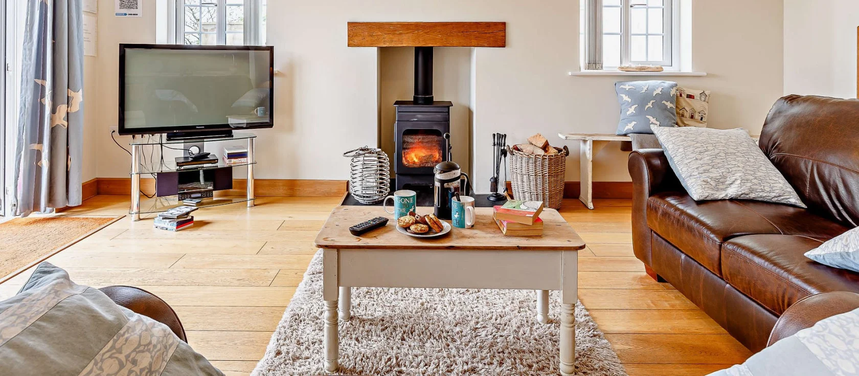 Picture mornings with coffee on the terrace, breathing in the fresh Atlantic air as views sweep across rolling farmland to the distant sea. Spend your days exploring dramatic clifftops on the South West Coast Path, discovering sheltered coves and golden beaches, or wandering through ancient woodland. As evening falls, perhaps stroll across the fields to the village pub, then return to your peaceful retreat to gather around the wood burner, recounting the day's coastal adventures.
