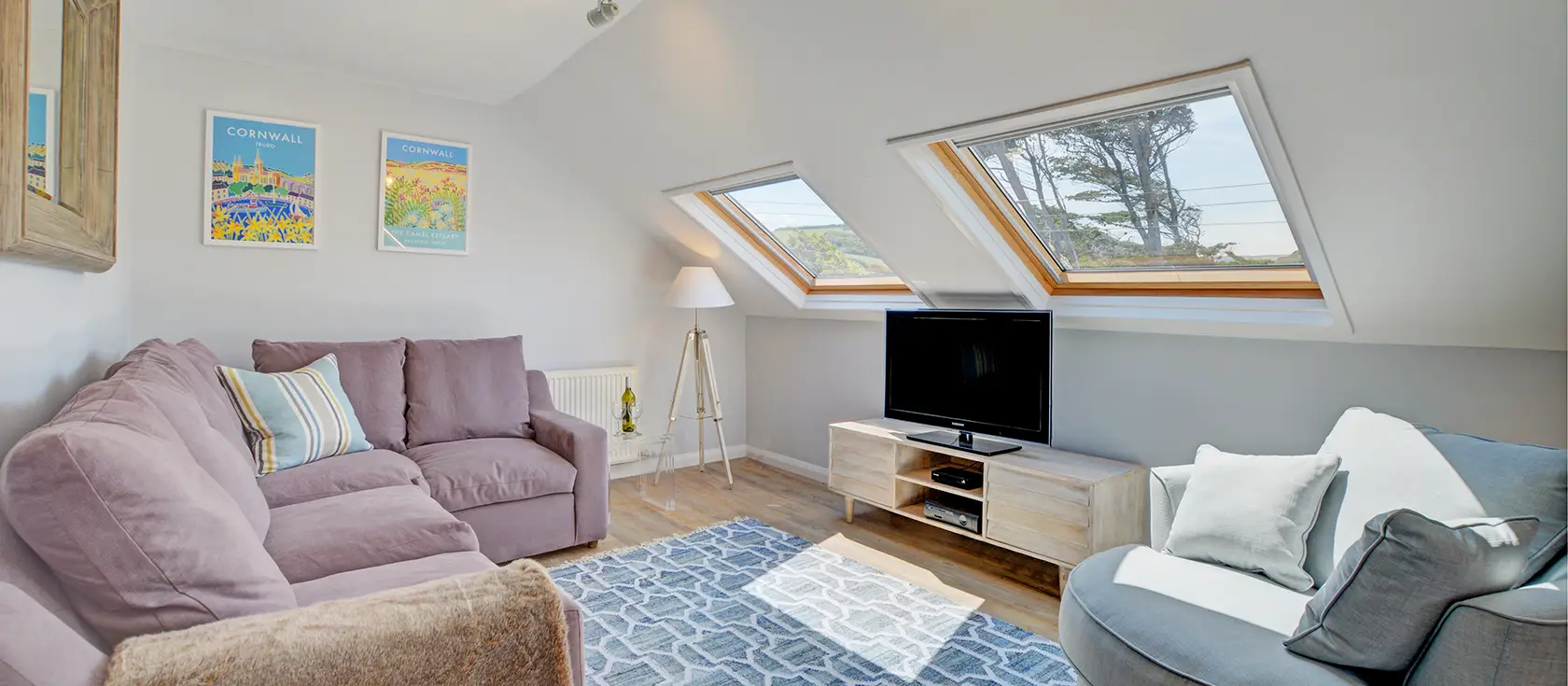 Gunnedah Studio, Crackington Haven, is a beautifully presented two-bedroom cottage offering contemporary coastal living with breathtaking sea views. The light and airy kitchen/diner provides everything you need for your self-catering escape, featuring a built-in electric oven, electric hob, dishwasher, fridge / freezer, and washer dryer. The comfortable first-floor lounge boasts skylights that flood the space with natural light, creating two distinct sitting areas perfect for families to relax together whilst little ones enjoy some downtime after a day of coastal adventures.