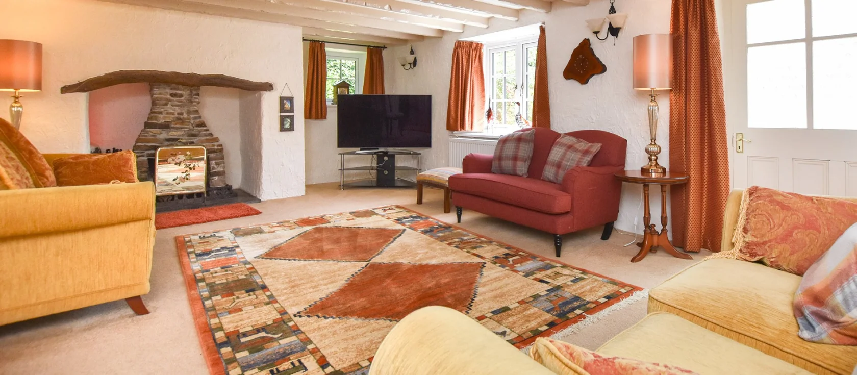 Langdon House, Jacobstow is a spacious four-bedroom detached property nestled in the peaceful North Cornwall countryside, offering generous accommodation for families and groups seeking a characterful rural retreat. The striking lounge welcomes you with exposed ceiling beams and an open stone fireplace, while a second sitting room provides additional relaxation space with comfortable sofas and Smart TV. The well-equipped kitchen centres around a large range-style electric cooker and gas hob, complemented by dishwasher, Belfast sink, and a substantial table seating six. A separate utility room houses the washing machine, tumble dryer, and large fridge / freezer, while the elegant dining room features stunning slate flooring and a feature fireplace.