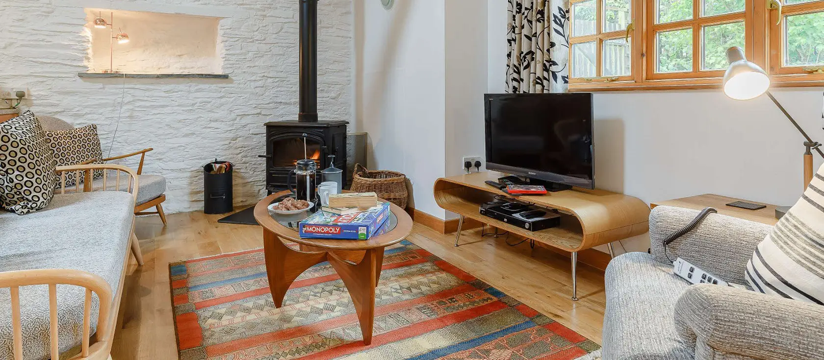 Honeypin, South Torfrey Farm, Golant, is a charming single-storey barn conversion offering a warm and welcoming retreat with character at every turn. The well-equipped kitchen features an electric oven and hob, microwave, fridge / freezer, dishwasher, and the convenience of both a washing machine and tumble dryer, making self-catering a breeze. The open-plan lounge and dining area oozes rustic charm with exposed beams and polished wooden floors, where you can relax beside the crackling wood burner whilst enjoying your favourite film on the TV with DVD player.