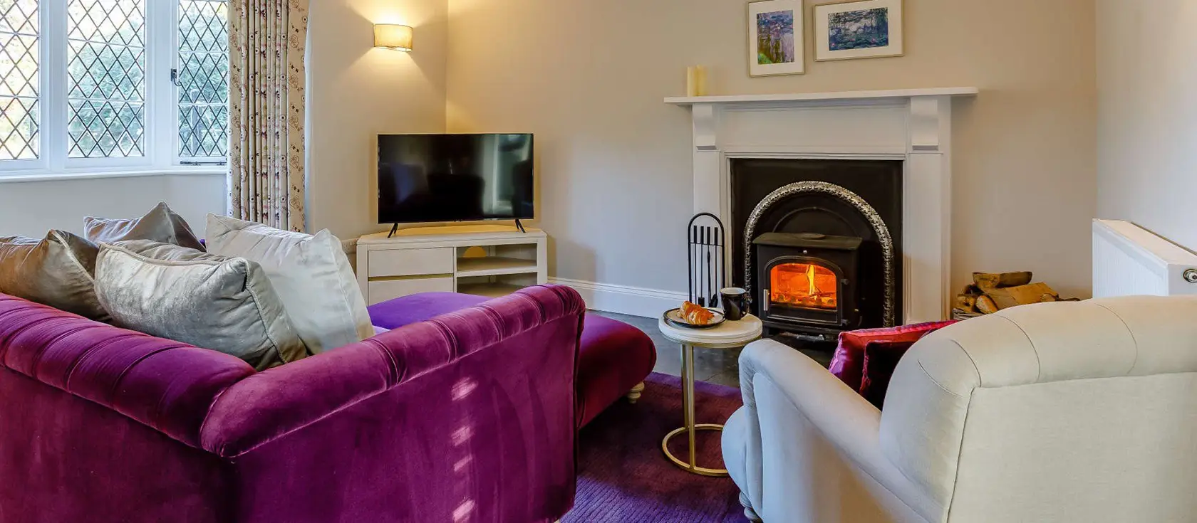 Two enchanting garden spaces await outside; a delightful cottage garden with patio, lawn and charcoal BBQ to the front, plus an enclosed garden with additional seating to the rear. The beautiful garden room flows seamlessly to the garden, ideal for alfresco dining or relaxing. Upstairs, two pretty bedrooms offer comfort: a double with vanity unit and walk-in wardrobe, and a characterful single that works perfectly as a dressing room or workspace. The impressive bathroom features a freestanding bath, separate shower, his-and-hers sinks and a convenient downstairs WC.