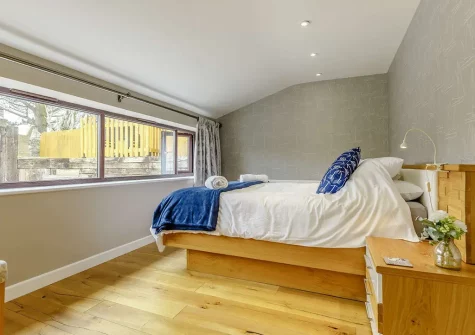 High Meadows Barn, Trewolla, is a stunning barn conversion that blends rustic charm with luxurious modern comforts. The well-equipped kitchen boasts an electric double oven, gas hob, American fridge / freezer with icemaker, and all essential appliances, flowing seamlessly into a magnificent dining area with seating for eight and a Bose sound system to enhance your dining experience. The simply stunning lounge features vaulted ceilings with beautiful exposed beams, a cosy wood burner, and a 65-inch Smart TV, creating an idyllic space for relaxation after adventurous days exploring Cornwall.