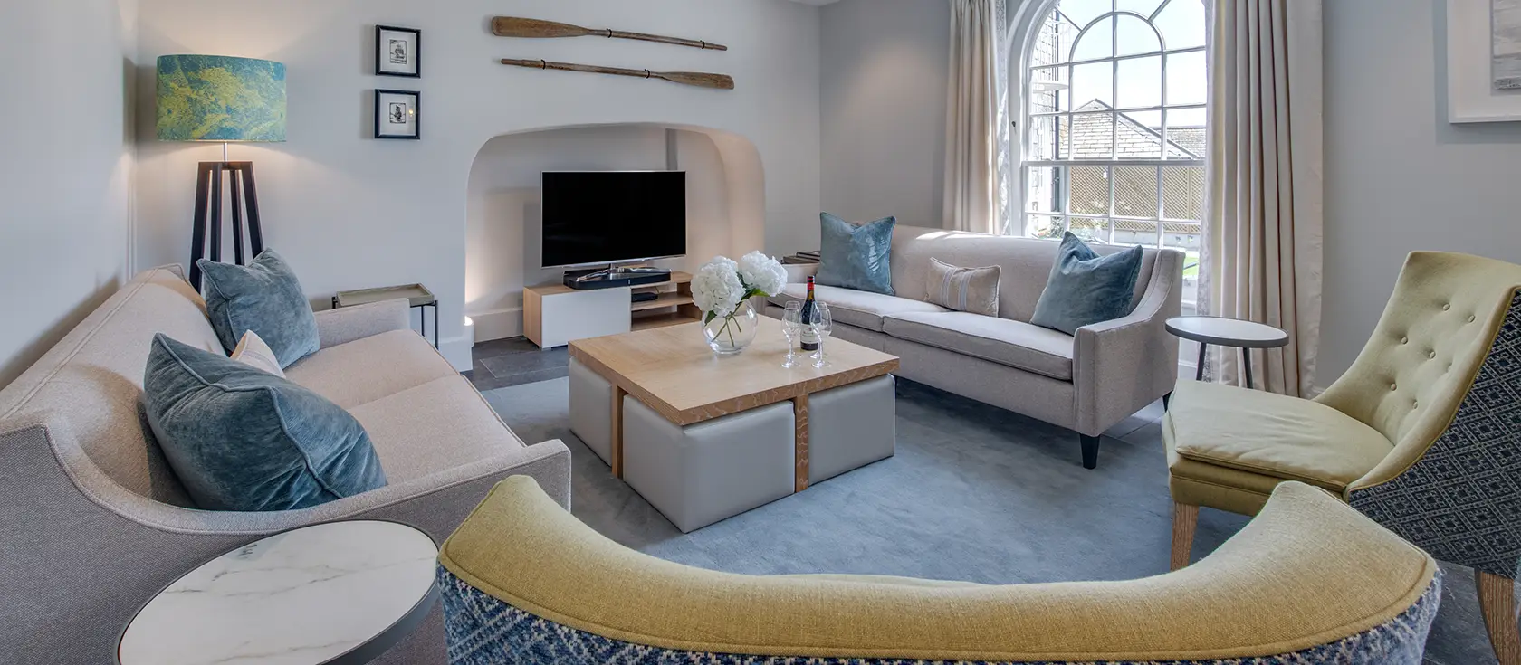 The bright ground floor also features a cosy snug with Smart TV and PS4 entertainment, ideal for relaxation. Step outside through patio doors to discover the large enclosed rear garden – your private retreat for outdoor entertaining. The charcoal BBQ awaits those who love cooking al fresco, whilst the generous outdoor dining table for 12 and comfortable sun loungers invite you to linger whilst gazing across the estuary. Upstairs, six beautifully appointed bedrooms include flexible super-king-size and king-size options, alongside six bathrooms ensuring comfort for all guests.
