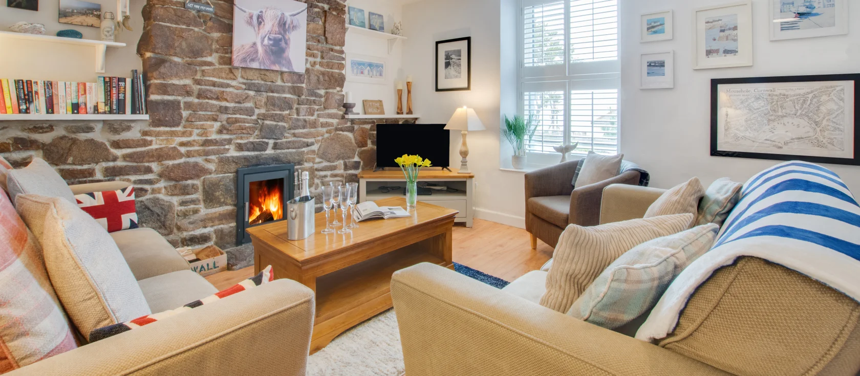Nigel House, Mousehole is a characterful Cornish cottage sleeping four guests in two beautifully appointed bedrooms, perfectly suited for couples or small families seeking an authentic coastal retreat. The spacious kitchen / diner features traditional wooden units, integrated appliances including dishwasher and washing machine, an espresso coffee machine for those leisurely mornings, and a large dining table gathering everyone together for hearty Cornish breakfasts. The cosy lounge welcomes you with comfortable seating, a wall-mounted TV, and a charming wood burner that creates the perfect atmosphere for evenings in, whilst original stonework and maritime artwork throughout celebrate the cottage's coastal heritage.