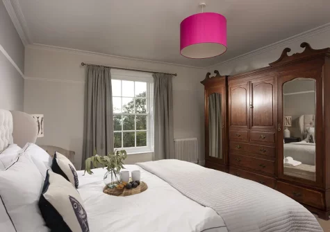 Treharrock Manor, St Endellion is a Georgian country manor in its own 14-acre gardens near Port Isaac. Ten spacious well-furnished bedrooms (six king-size and four twin rooms) and seven bathrooms easily accommodate groups, families and wedding parties of 20 guests. There's a chandeliered drawing room, a cinema room with 90″ screen and woodburner stove, a snooker room, a second sitting room with woodburner, snug, formal dining hall for 20 and a catering kitchen with slate floor, Aga and pine breakfast table for ten.