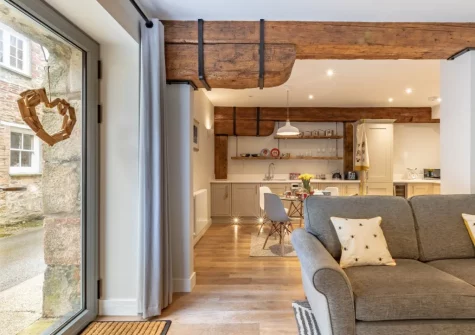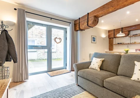 Stones Throw, Charlestown is a beautifully crafted ground-floor apartment blending contemporary elegance with historic charm. The thoughtfully designed open-plan kitchen boasts a wine chiller, electric oven and hob, microwave, dishwasher, and washer / dryer, creating the perfect space for culinary adventures. Step into the stylish lounge area where original granite beams meet vibrant décor, featuring a comfortable sofa bed, Smart TV, and Bose sound dock for those cosy evenings in.