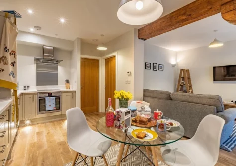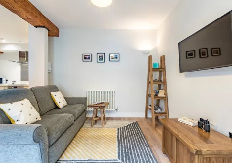 The apartment welcomes you with gated off-road parking before revealing its treasures within. Retreat to the tastefully decorated bedroom complete with a king-size bed and television, whilst the modern shower room provides all the essentials for a refreshing start to your day. With sleeping arrangements for up to four guests and space for your furry companion, this charming retreat perfectly balances comfort with character.