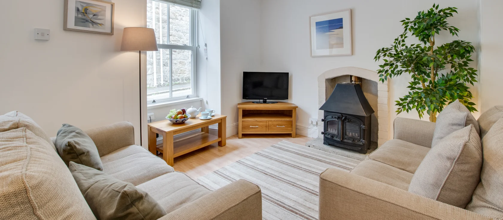 Picture lazy mornings in the courtyard with coffee and croissants, planning the day's adventures as seagulls wheel overhead. Spend sun-drenched afternoons on golden beaches just moments away, then wander back through cobbled streets lined with galleries and artisan shops. As evening draws in, gather around the dining table for a feast of locally caught seafood, then sink into comfortable sofas whilst the decorative wood burner glows softly in the corner.