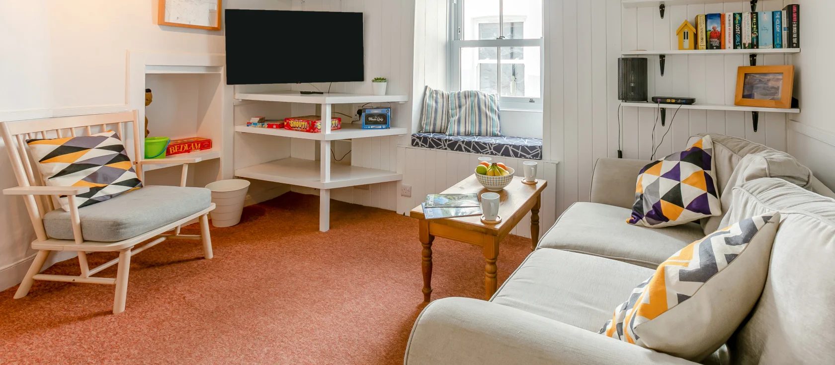 Upstairs, a bright double bedroom offers restful accommodation, while the cheerful bunk room delights younger guests with its playful character. A modern family shower room with rainfall shower completes the layout. While there's no garden here, Harbour Beach lies less than 100 metres away, and allocated parking for one car is available in a private car park half a kilometre from the cottage.
