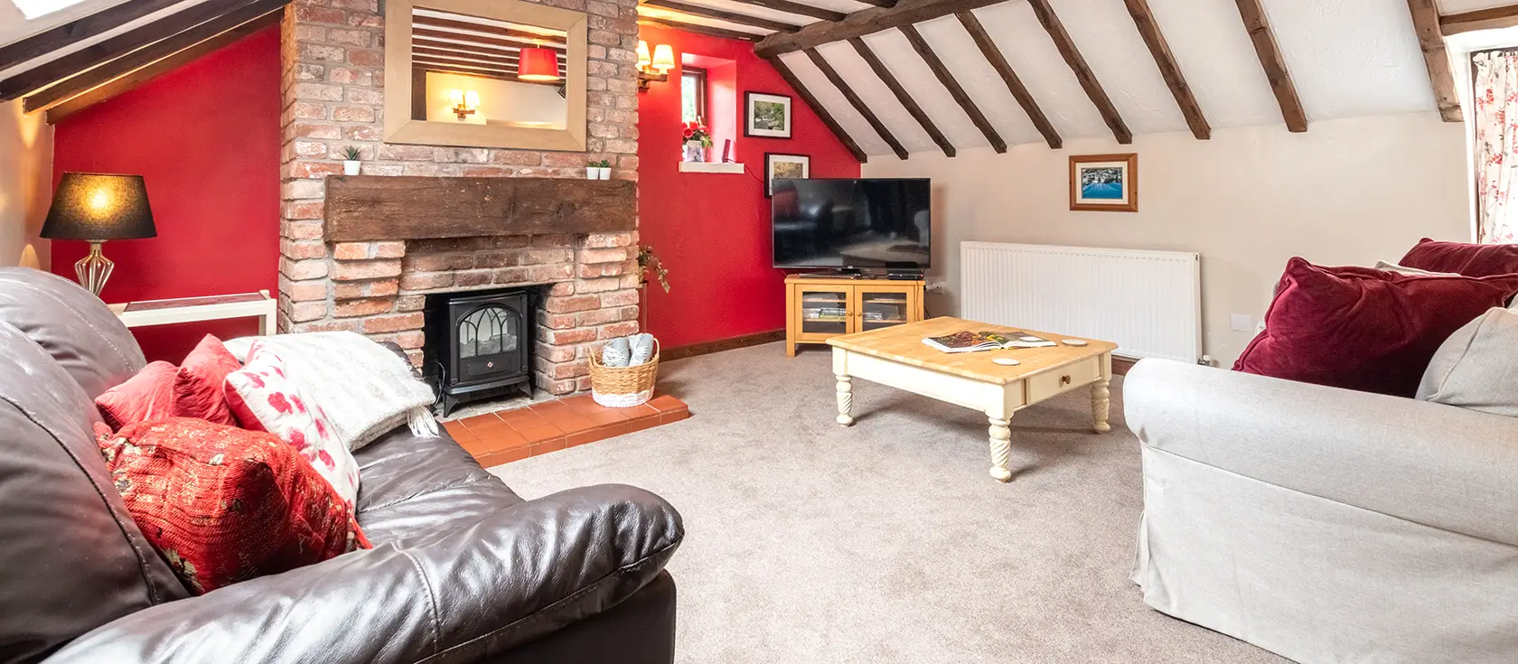 Granary Cottage, Swimbridge, is a characterful two-bedroom stone cottage brimming with original features including beamed ceilings and wooden floors throughout. The cosy kitchen / diner boasts a traditional fireplace (now ornamental), complete with an electric cooker and hob, microwave, fridge / freezer, dishwasher, washing machine, tumble dryer, and all the modern conveniences you need for a comfortable stay. Upstairs, the spacious living room captivates with its arched beamed ceiling and feature wall housing a coal effect electric fire, creating the perfect spot for cosy evenings after a day of exploration.