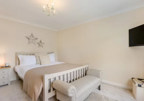 Step outside to discover a fully enclosed dog-safe garden featuring a generous lawn and patio area complete with garden furniture and a charcoal BBQ – ideal for alfresco dining on balmy summer evenings. The property boasts two beautifully appointed bedrooms: one with a king-size bed offering enchanting estuary glimpses, and one super-king-size zip-and-link that can transform into twin beds upon request. With a family bathroom featuring a shower over bath, plus an additional ground-floor shower room, Hove To ensures comfort and convenience for all guests.