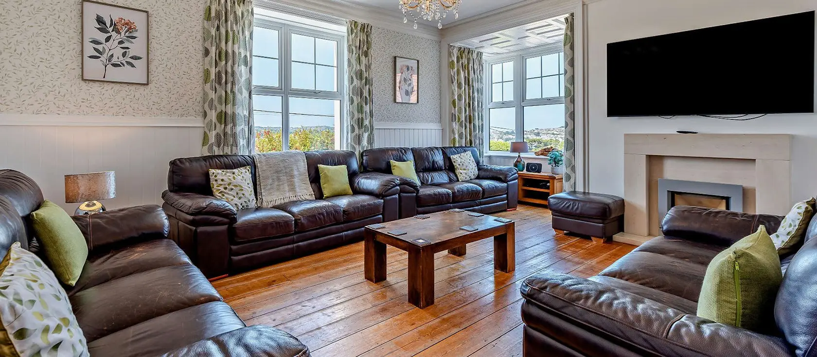Redland House, Instow is a spacious and stylish house designed for large gatherings and memorable group holidays. The bright, airy kitchen commands stunning river views and features two double range ovens, an American-style fridge/freezer, two dishwashers, two microwaves, and a Nescafé Dolce coffee machine. A breakfast table with benches creates the perfect sociable hub for gathering and cooking. Two inviting lounges boast river views, one equipped for families with Sky, Netflix, and Disney+, whilst the second provides a serene retreat. A grand dining room overlooks the river, accommodating all guests together, whilst the games room features pool and table tennis.