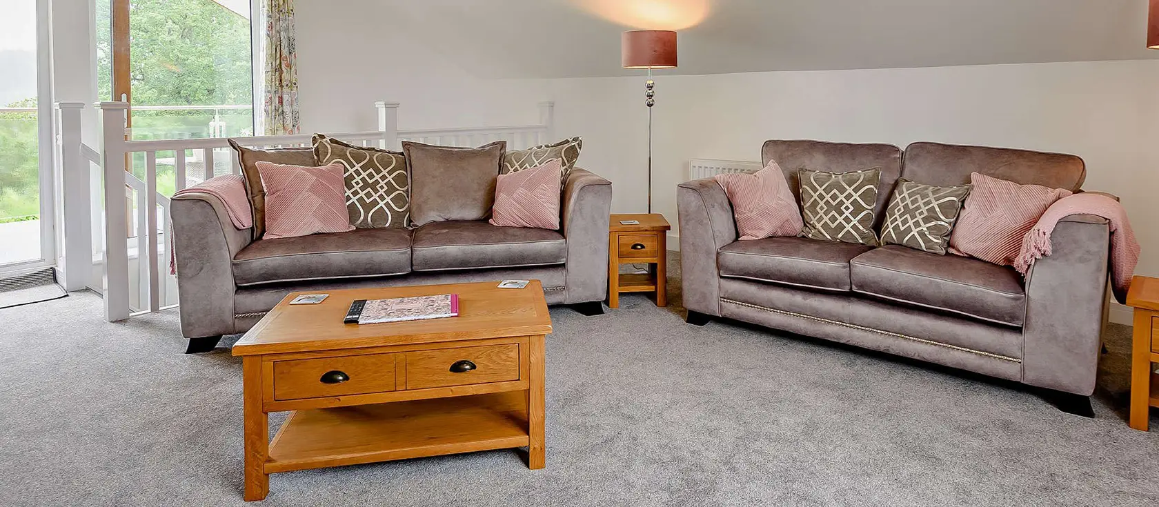 Step outside to the patio area, which invites you to linger over morning coffee or afternoon drinks. The private hot tub is your sanctuary for relaxation – a soothing escape after exploring the day's adventures. The lodge offers two ground-floor bedrooms: a spacious king-size with en-suite shower room and a twin zip-and-link room (convertible to super-king-size on request). A family bathroom completes the accommodation.