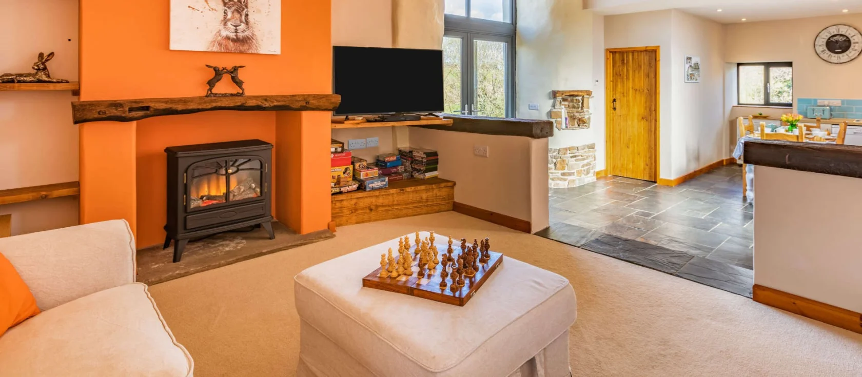 Picture mornings with coffee on the patio, birdsong drifting across the fields as mist lifts from the valley below. Days unfold at your own pace: perhaps a ramble through Devon lanes, an afternoon exploring market towns, or simply settling into the garden with a good book while the barbecue sizzles. As dusk settles, gather in the vaulted living space, the glow of the fire warming the exposed beams, and toast another day in this peaceful corner of the countryside.