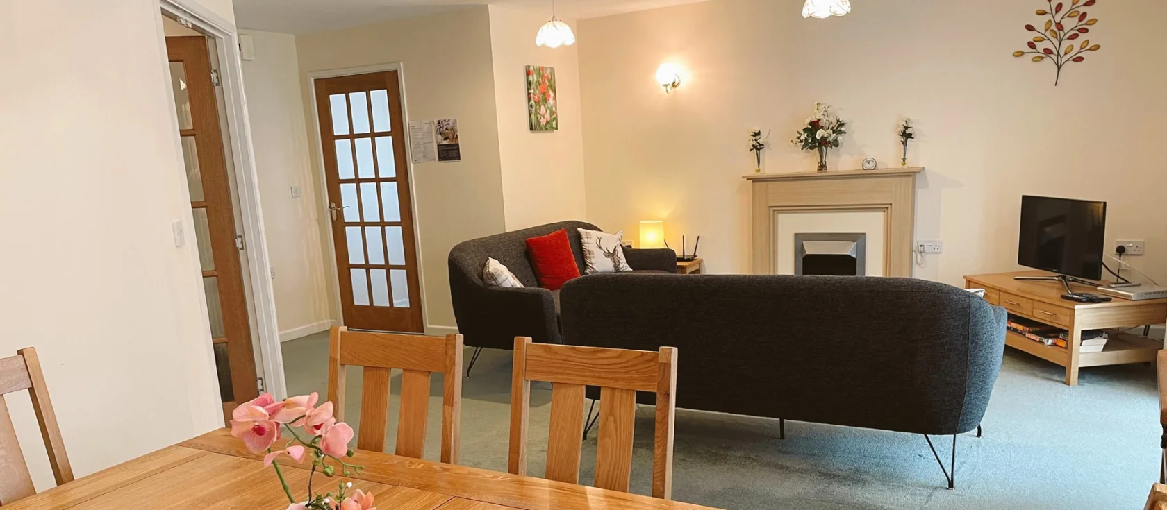 Gifford Close Bungalow, Hartland is a spacious single-storey retreat sleeping five guests in the heart of this traditional North Devon village, perfectly positioned for exploring the dramatic Atlantic coastline. The well-equipped kitchen features a double oven, ceramic hob, microwave, fridge / freezer, and dishwasher, with everything needed for self-catering ease. The generous lounge / diner welcomes you with comfortable sofa seating, a dining table for family meals, Smart TV / DVD, and hi-fi system, while doors lead through to the bright conservatory where cane furniture and an additional television create a sunny spot for relaxing throughout the day.