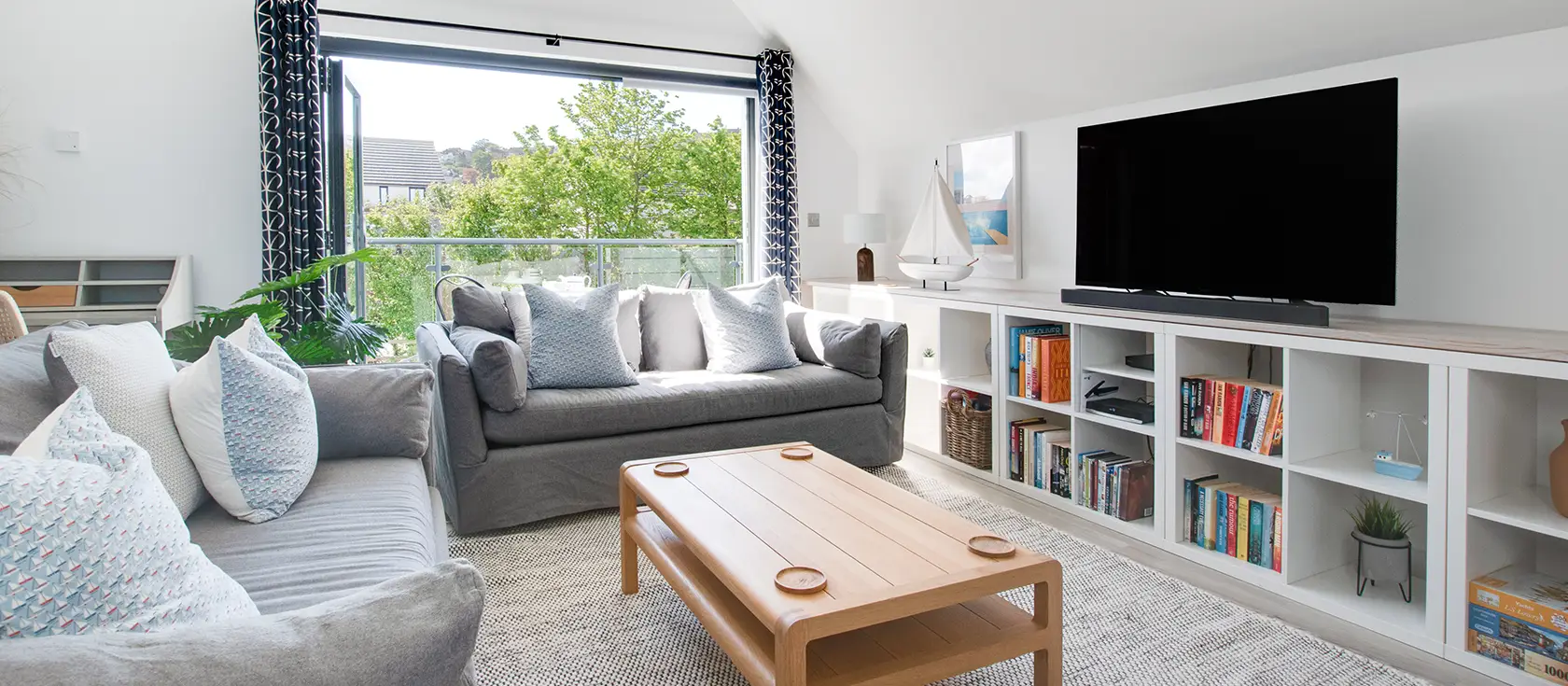 Coco Beach, Westward Ho! is a beautifully designed three-bedroom house offering a perfect blend of contemporary style and coastal charm. The impressive first-floor open-plan lounge/kitchen/diner features an induction hob, electric oven, and high-end appliances including a Ninja Air Fryer and wine cooler, creating the ideal space for culinary adventures. The spacious living area boasts ample seating, a Smart TV with BT TV and BT Sport, and bi-fold doors opening onto a balcony where you can soak up breathtaking coastal views and sea breezes.