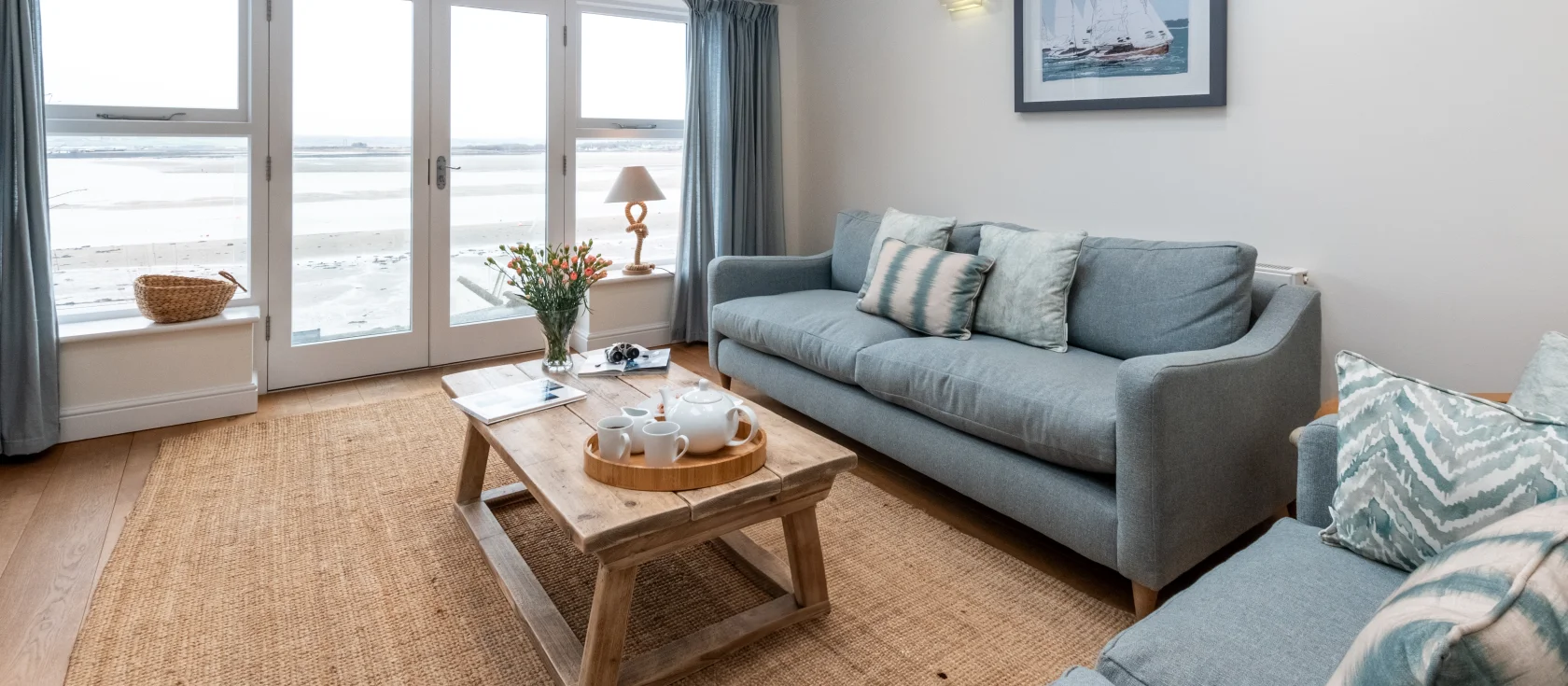 Heading Outside, the enclosed courtyard garden features a raised decked area with outdoor furniture, perfect for soaking up those magnificent estuary views while children and dogs play safely below. Upstairs, two comfortable bedrooms include a peaceful double and a flexible twin room, served by a family bathroom with shower over bath. A contemporary staircase descends from the living area to the lower ground floor, where a double bedroom boasts its own en-suite shower room and French doors leading directly to the garden.