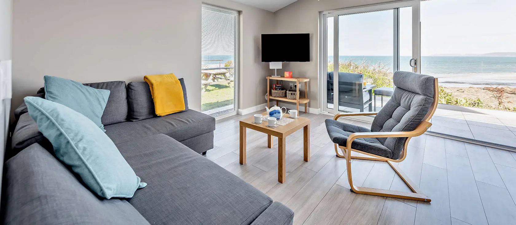 Westward Home!, Westward Ho! is a stunning two-bedroom cottage offering a prime seafront position with breathtaking panoramic ocean views. The contemporary kitchen is beautifully equipped with an electric oven and hob, microwave, coffee machine, fridge / freezer, dishwasher, and washing machine, making self-catering a breeze. The open-plan lounge area features an inviting L-shaped sofa and armchair, perfect for relaxing with your favourite films on the Smart TV whilst soaking up the spectacular vistas through glass patio doors.